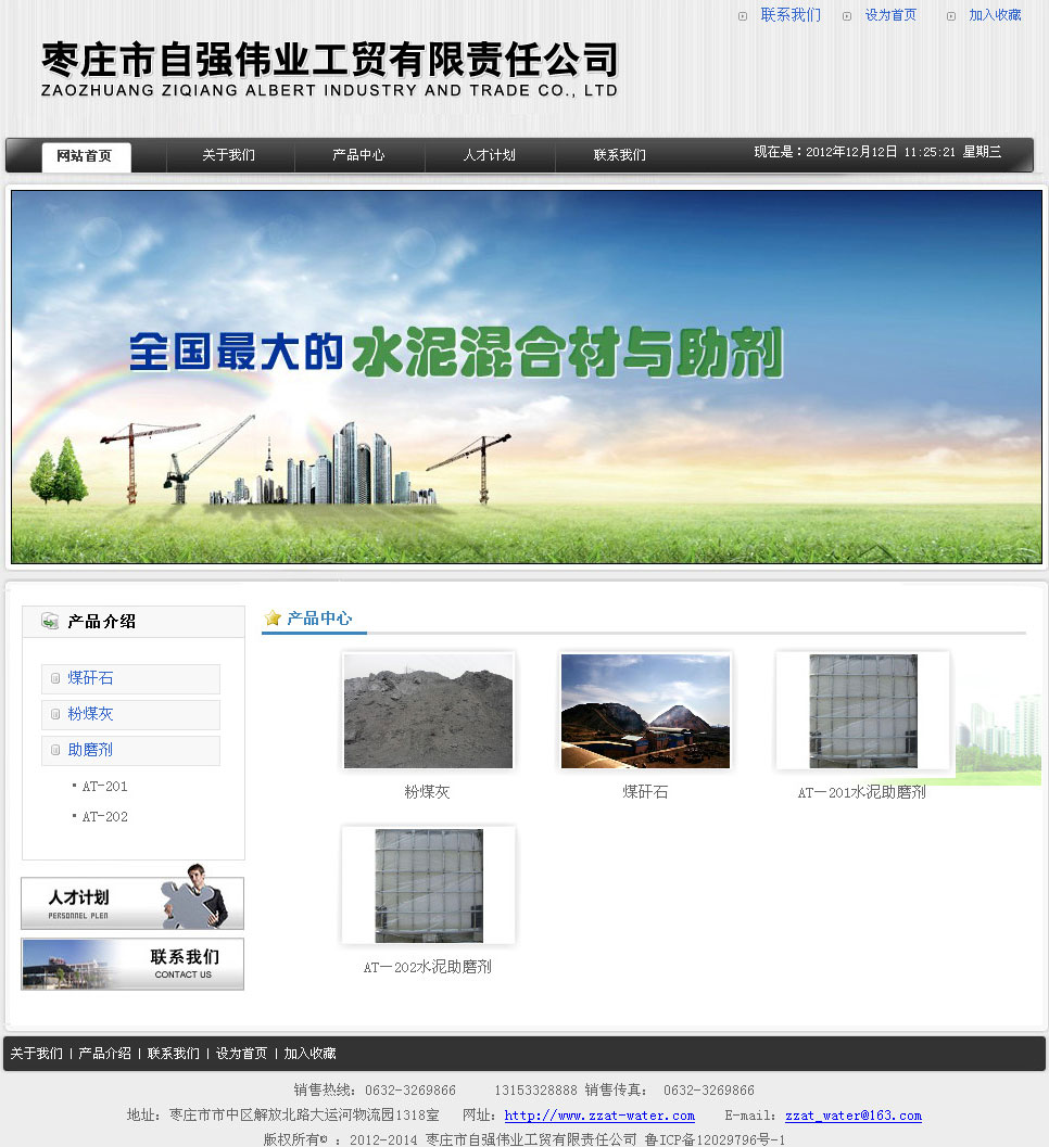 棗莊市自強偉業工貿有限責任公司是一家專門從事水泥混合材料、水泥化學助劑生產、銷售為一體的規;。公司常年供應煤矸石、粉煤灰等水泥生產用混合材料,以及水泥助磨劑、三乙醇胺、乙二醇等水泥生產用化學助劑。公司注冊資金300萬元,是全國最大的水泥混合材與助劑供應商之一,現有資源與產品介紹如下: 煤矸石 公司擁有550萬噸煤矸石資源,主要供應棗莊中聯水泥廠、臨沂沂州水泥廠、山東金橋水泥廠以及棗莊周邊50余家粉磨站。是全國最大的煤矸石資源提供商。 粉煤灰 公司擁有590萬噸濕粉煤灰資源,以及年產20萬噸干粉煤灰生產線,主要有一級灰、二級灰和濕灰三種產品。是全國最大的粉煤灰濕灰資源提供商。 助磨劑 主要產品有AT系列水泥助磨劑。維持原來強度,可多摻9-11%混合材,提高磨機10-20%產量。 水處理劑 主營產品有阻垢劑、緩蝕劑、殺菌滅藻劑、清洗劑、預膜劑、螯合劑、分散劑、反滲透藥劑、膜阻垢劑等,廣泛應用于工業循環水、鍋爐及采暖水、油田注水、反滲透膜等系統。